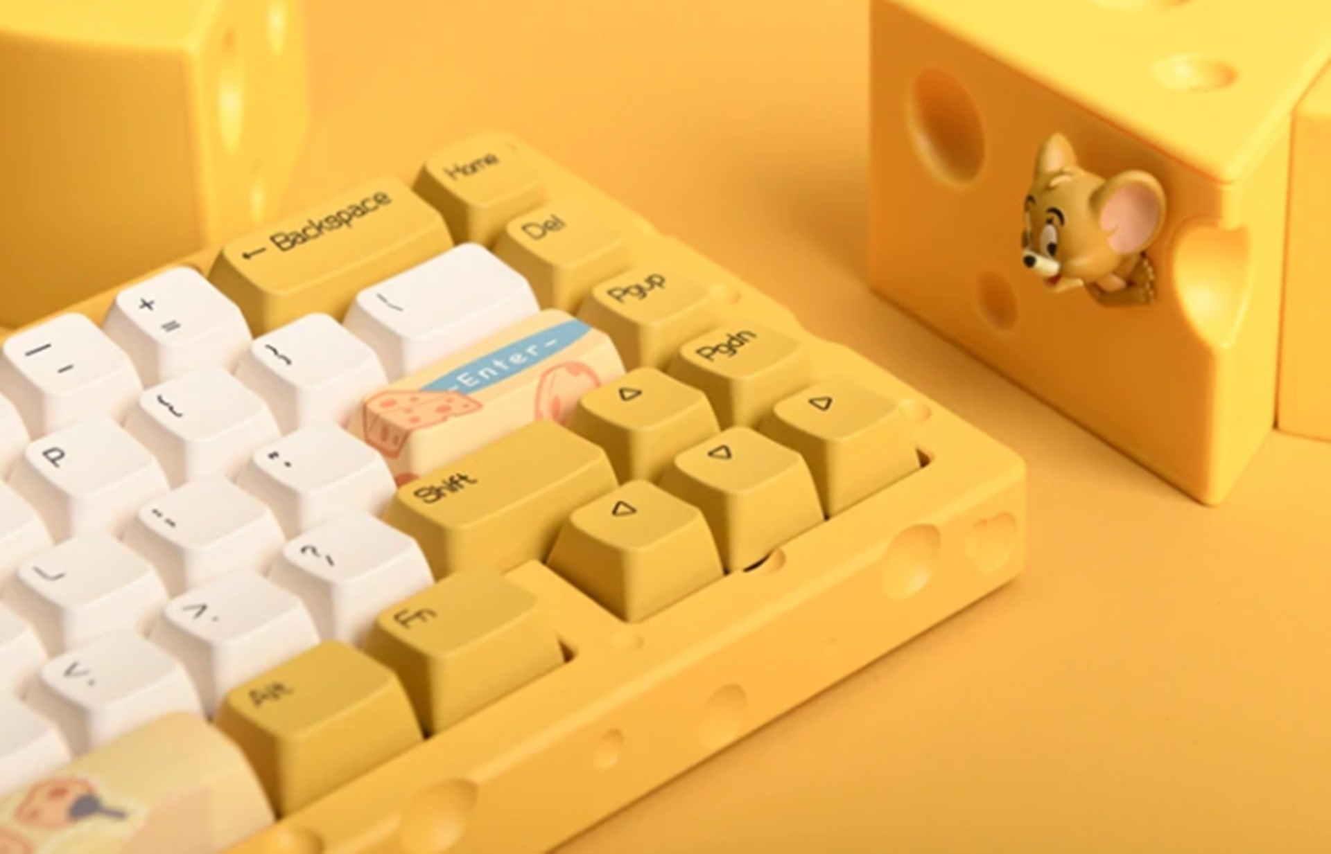 A hivatalosan Ajazz AC067 Cheese Gasket RGB Mechanical Keyboard névre hallgató tasztatúrát a vállalat egyik Tom és Jerry rajongó alkalmazottja tervezte a gyermekei unszolására. A bohókás külső alatt azért minőségi komponensek lapulnak, az eszköz Kailh Box Yellow kapcsolókkal rendelkezik, amelyek egyenletes, lineáris leütést tesznek lehetővé.